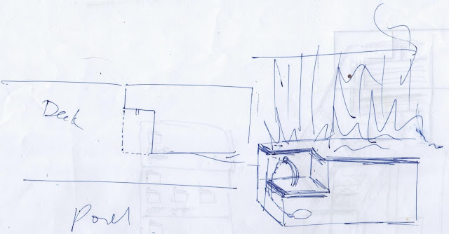 It took us ages to decide on the design of the small water feature beside the third raised bed, much more so than the Koi Pond itself! A preliminary sketch of one of the designs considered.