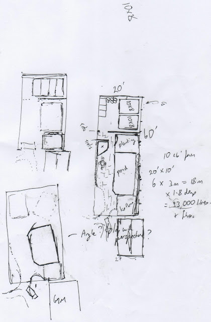 I suppose I should have started, before we featured any aspect of the project on our blog, by showing the plans and sketches of the new garden. Most of these sketches were made on paper, a few were made on the computer but using basic programs rather than sophisticated design software. So how come I never featured these plans before? The answer is just I never took the time to scan these paper sketches until recently hence only featuring them now.