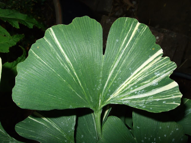 Ginkgo biloba 'Variegata' is the first one to come out and has been available for quite some time now. It is also known by other names (like 'Majestic Butterflies', etc) depending upon where it is sold but essentially they are the same with leaves randomly striped white/cream and occasionally throws out half/half and all white leaves too. It's one of my favourite plants in the garden and one of the most complimented by visitors. Even I cannot help but stop and marvel at the leaves whenever I pass by it and could easily spend lots of time taking close up photos of its foliage.