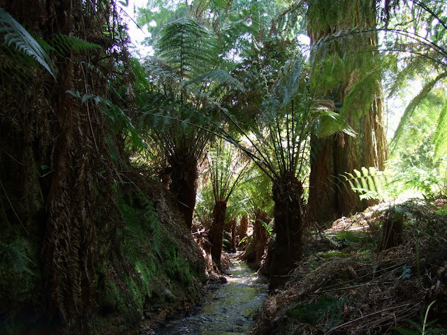 | Rows of self sown Dicksonia antarcticas near the hidden seating area... |