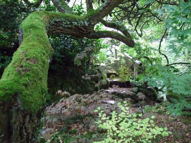| Right from the start, we loved the ethereal feel of the garden with old gnarled moss covered trees and rocks. |