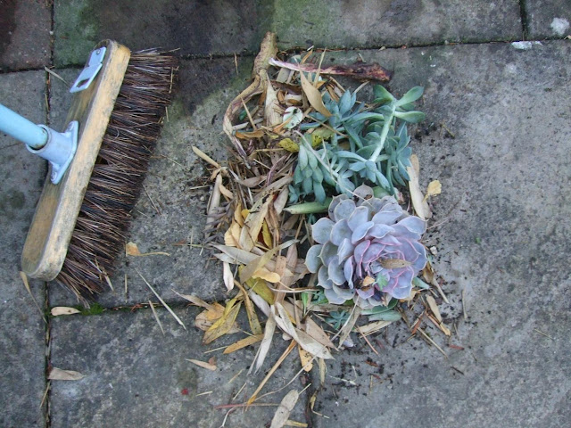 Succulents were the first to be tucked in under cover in the 'spiky' greenhouse, which I mostly did a couple of weekends ago, to give them a longer time to dry out. I've shoved in a few more last weekend and the only ones left outside are the ones that are either hardy (in our garden anyway), to go in the house, or bedding ones treated as annuals and waiting for the first frosts to end their pretty existence (or at least until I tidy them away myself.)