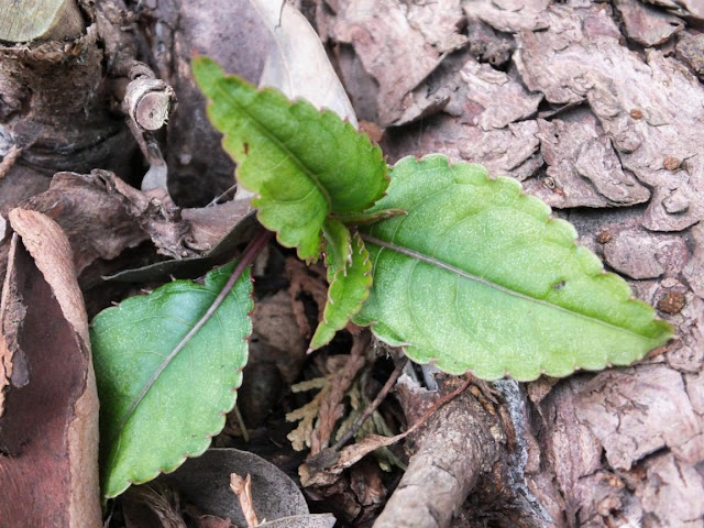 This little shoot of Impatiens omeiana is popping up in the 3rd raised bed near to the filter house. It has a habit of wandering about a little, this certainly wasn't where it was last year!