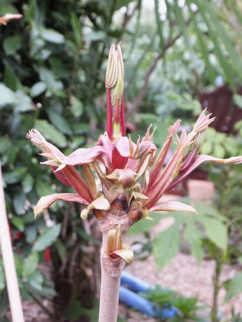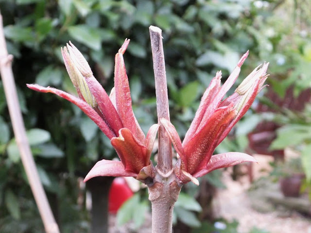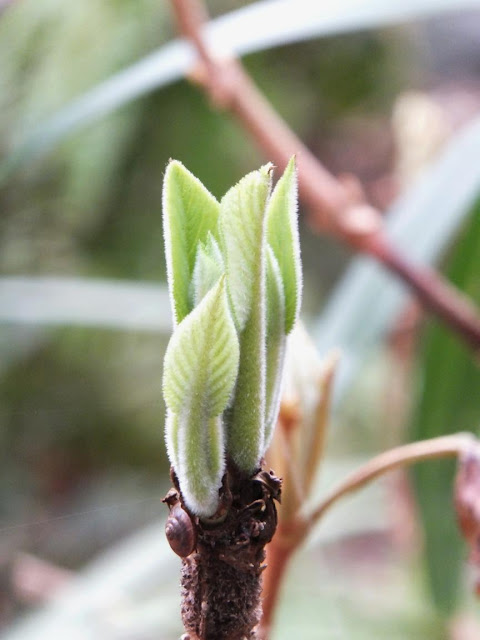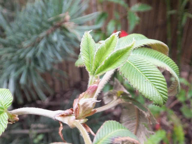 DeleteOh, this was such an enjoyable post. I loved looking at all this lovely new growth. I never realized the new leaves on Aesculus were so interesting. Hmm....a Schefflera substitute, huh?