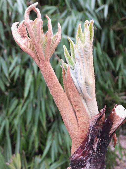 DeleteMy immediate reaction to the variegated Fatsia was "I want one!" I have a solid green one, and a Spiders Web would be a nice companion. I truly love all of your weird and wonderful plants, including Cousin It. Seeing newly emerging foliage is one of my greatest spring time joys.