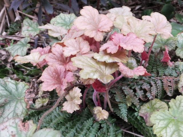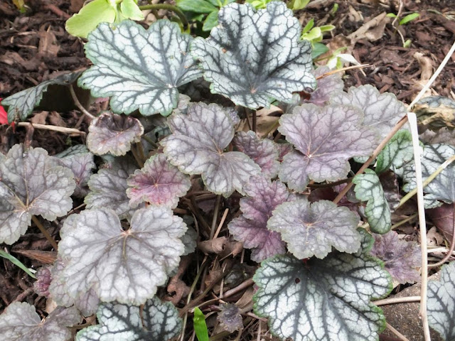 Another Heuchera (no longer have the name), the marbling effect resembles a much more tender begonia leaf, but this has the advantage of being evergreen and hardy.