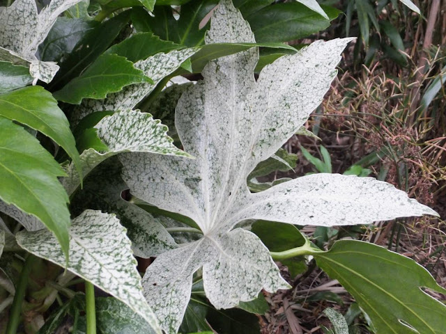 DeleteIt's so much fun to go out in the garden now and see what changes are taking place. You have a lot of interesting things going on in your garden. I actually love the Spiders Web fatsia! I also like the contrast that a variegated foliage plant gives.