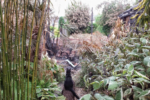 DeleteI have tears in my eyes as I write this note to you. What an awful scary thing to happen. I know how much love you put in your garden. The photos tell it all. I hope the insurance companies don't give you too much grief. I am glad that you both, cats and fish were not physically harmed. We are all thinking about you and look forward to see 'what rises from the ashes'.