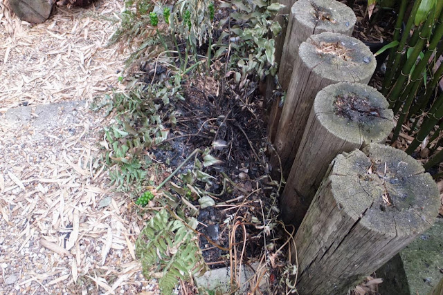 One of the signature traits of our garden and gardening blog is that we do nearly all of the work ourselves, planting and structural. This time however we are handing over the clearing and rebuilding of the burnt structures to the professionals. And the rebuilding won't be done until the work on our house has finished, as there are only so many builders and materials our garden can accommodate at any one point.