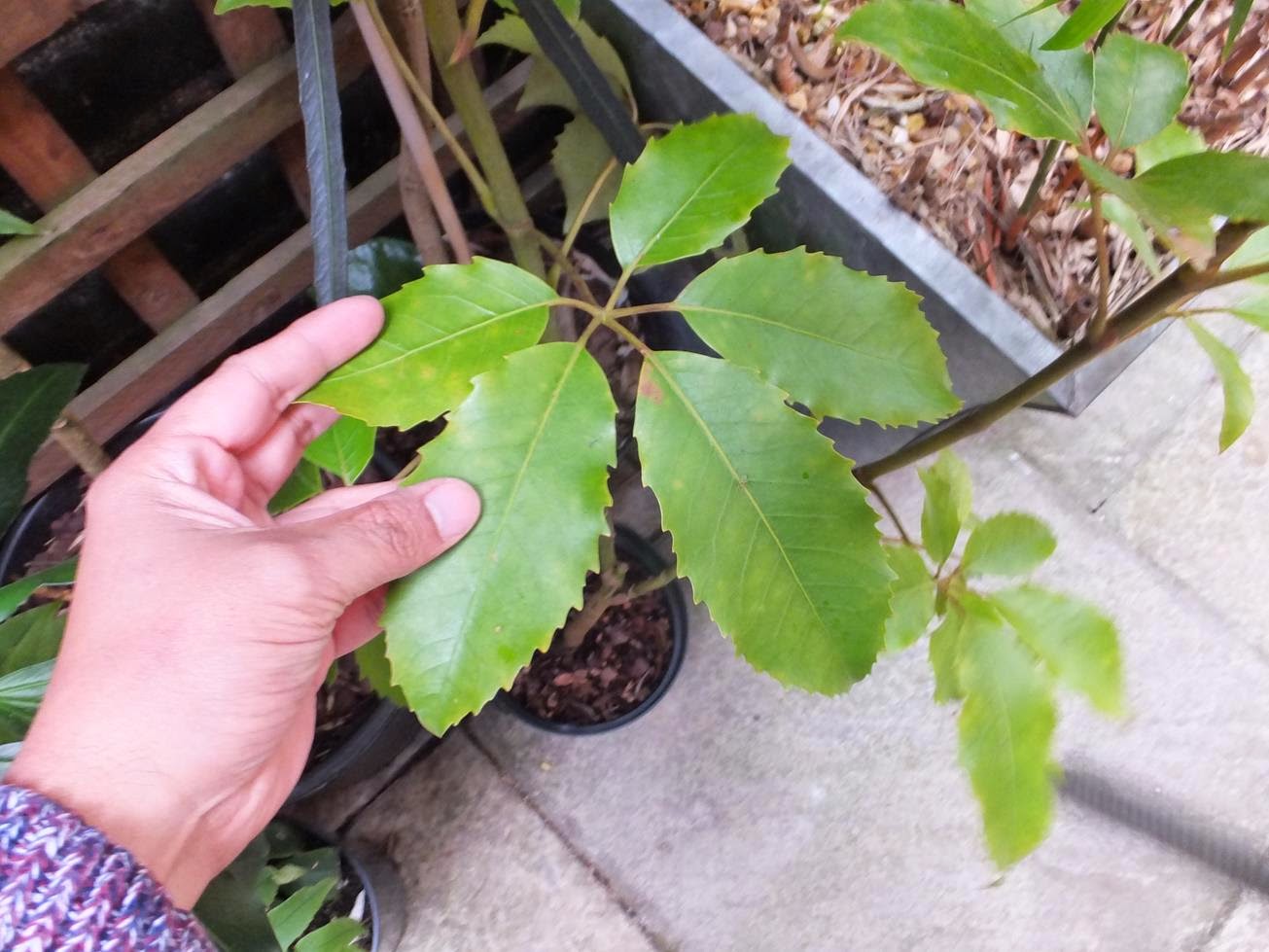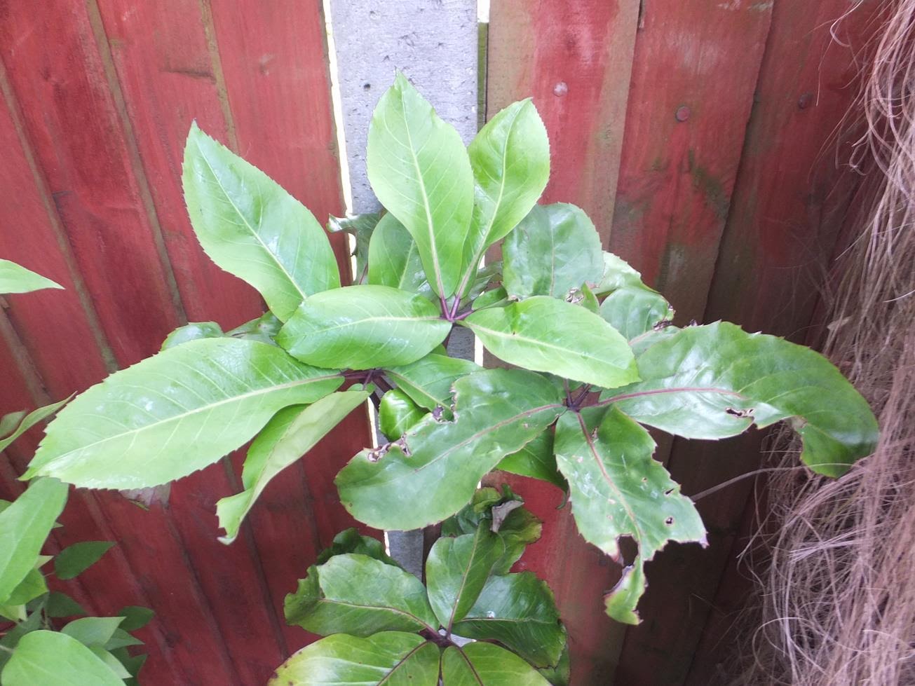 | Not much to look at now but it will quickly look much better. The not so hardy but so exotic looking, with its potentially huge and glossy leaves Pseudopanax laetus (syn. Neopanax laetus) |