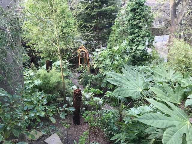 As you enter the garden a greenhouse that most of us would be very proud of greats you. full of tempting exotics tucked away for winter periods. Bananas were just starting to wake up. Unfortunately I go carried away in talking about the plants to actually remember to take a photo inside.