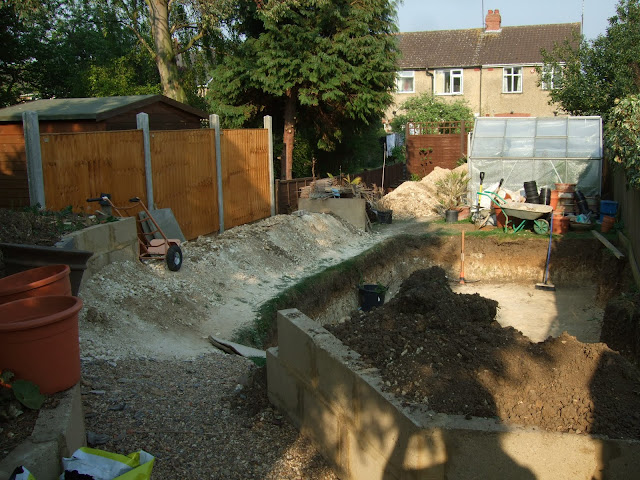 I must admit I think we overdid it last weekend and we pushed our physical capabilities to the limit. With the delivery date of the cement mix for the base of the pond getting closer we've put ourselves in a little bit of a panic mode. Overall I'm pleased with our progress and what we've done at the end of the weekend, with the dig nearly completed and the final ground dimensions already demarcated. But come Monday morning we were both absolutely shattered and it trickled on till Wednesday, going on auto pilot mode both mentally and physically. Normally I still do a little bit of chipping after work but I have to listen to my body and just take it easy for a change. So there's me signing off the project for a few days and no touching of spade, pickaxe, nor shovel. Just good old fashioned gardening and planting which I find very relaxing and invigorating. Come the long weekend we'll be raring to get going again I'm sure.