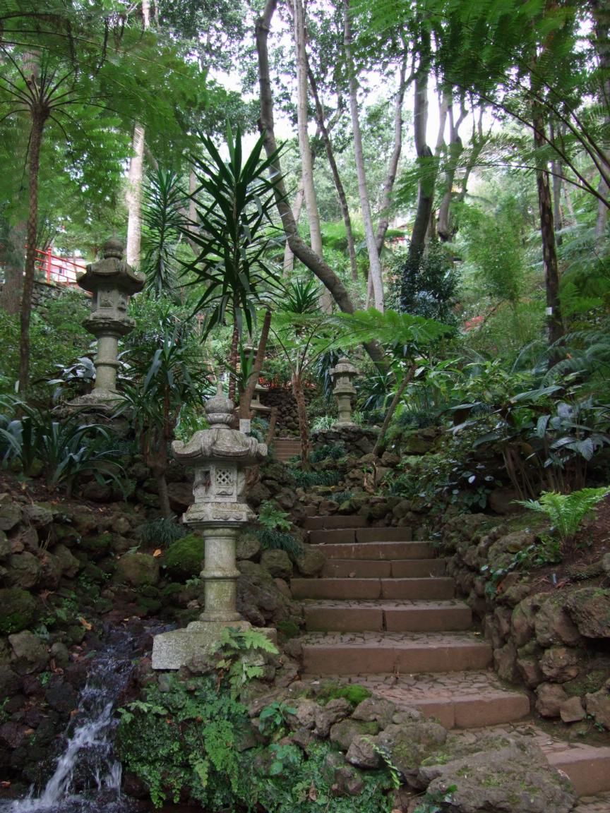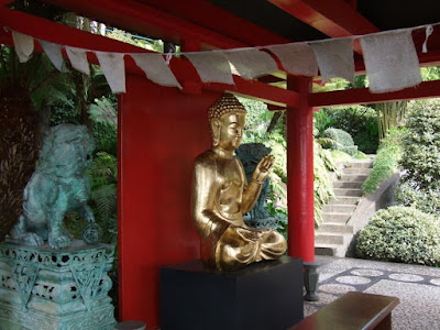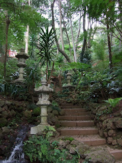 As you pass down though the garden the next section follows a stream through an oriental styled landscape complete with stone lanterns and large stone buddhas. There is a new building project underway in this area, with the slope above having been cleared from trees. This may have been connected with the landslides the island was affected by last year.