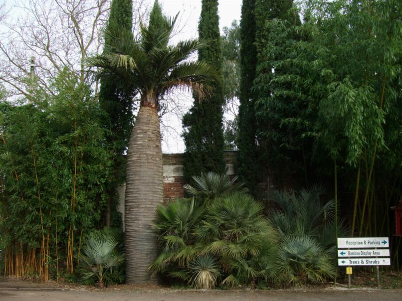 | This large Jubaea chilensis dominates the entrance to the car park. |