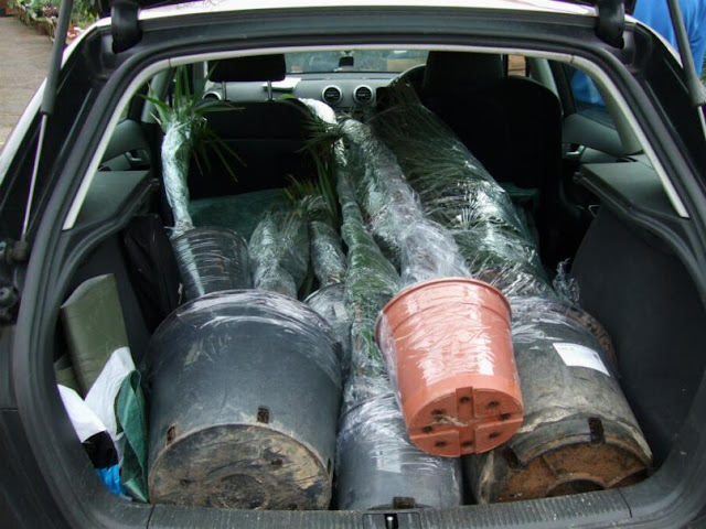 One palm that we were particularly looking forward to seeing was Lytocaryum weddellianum, the miniature coconut palm. We knew in advance that they had had a delivery of these, and were not disappointed with the selection. The only problem was which one to choose, sometimes you see a selection of plants and its easy to choose the one you want, but we had real trouble deciding between a tall one and a very lush but smaller trunked one. In the end we decided to go with the heart and get the more lush plant, and now its home. I'm sure we made the right decision. Lytocaryum weddellianum is not a hardy palm tree, but will take some cooler temperatures and can cope with low light levels. We won't be planting this out but keeping it in a pot and moving it into an outbuilding for winter.