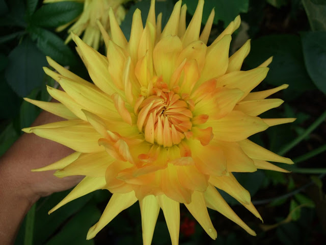 But what gorgeous blooms they have, bright, loud, and attention grabbing even on a dull summer's day. Dahlias are exotic in themselves (being originally from Mexico) but with bloom colours chosen correctly, it looks great in an exotic/tropical border, as it is at home in a cottage style garden. Even the late Christopher Lloyd of Great Dixter sing its praises for it's use in an exotic garden even before it became 'fashionable' again.