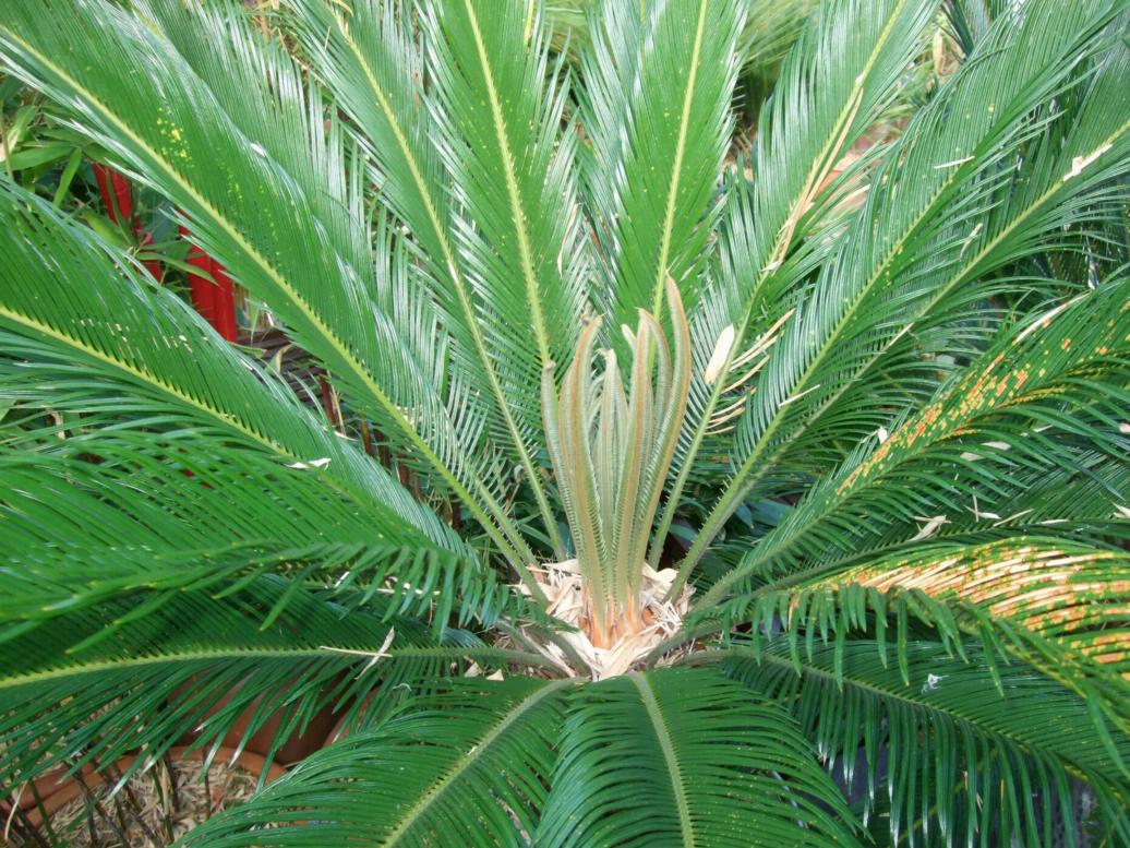 | Cycad sending out a late flush of new leaves. |
