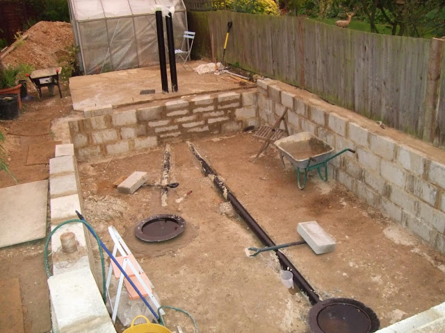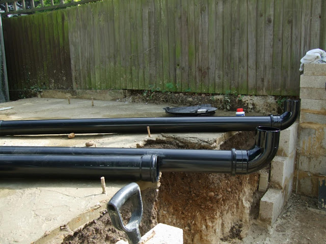 Or should I say bottom's down as we have finally installed the two bottom drains and the soil pipes at the base of our new pond.