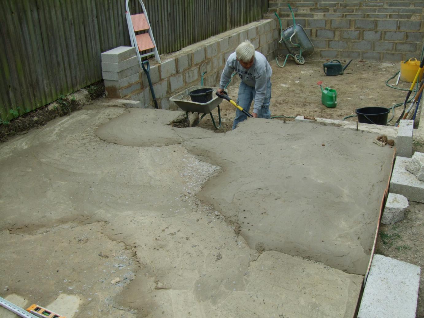 And once the concrete had dried, we have started to build the walls up on that side of the pond.