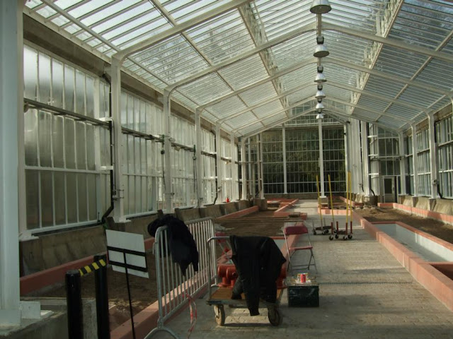 | Works being undertaken in one of the front glasshouses. |