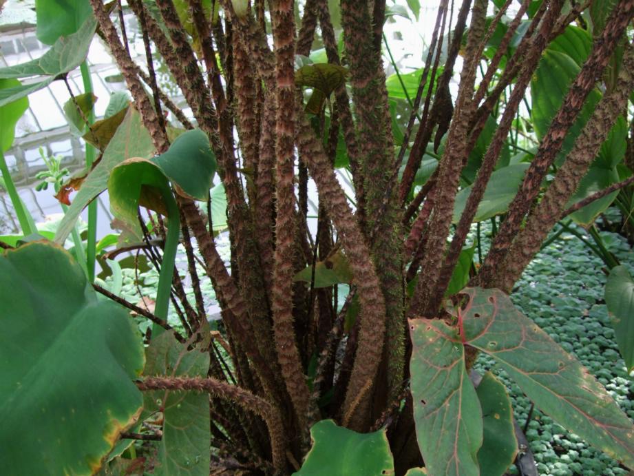 | The unusual prickly stems of Cyrtosperma johnstonii. |