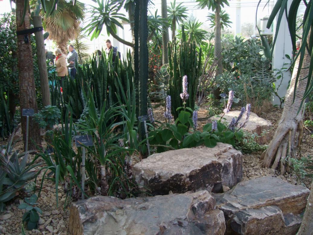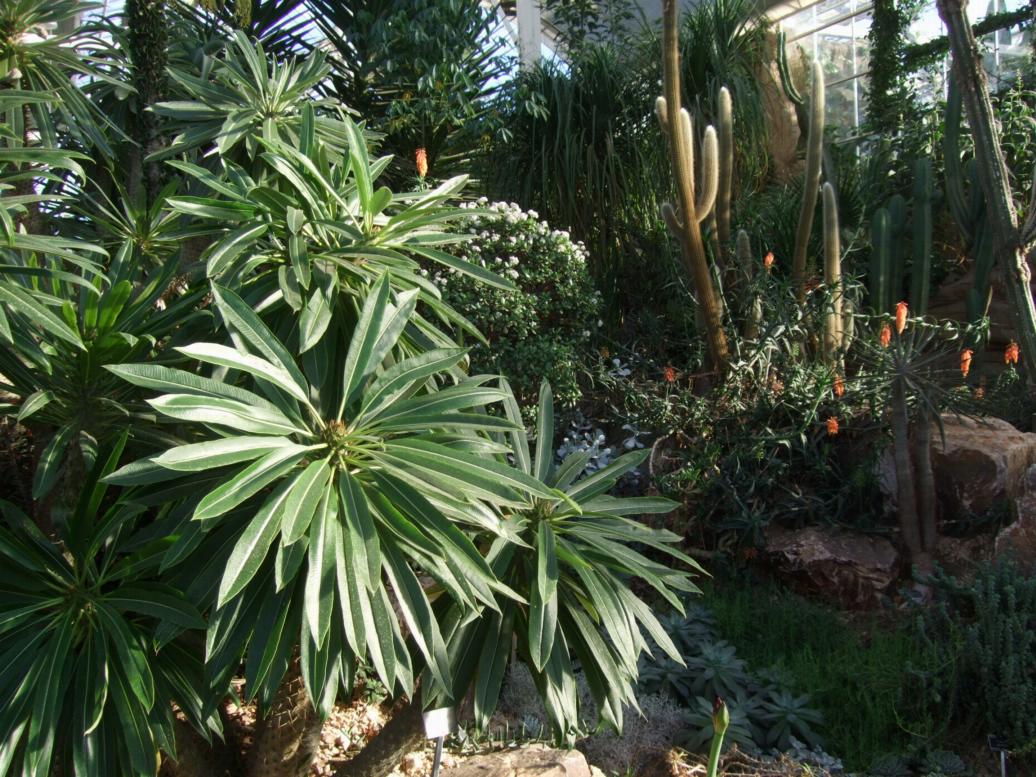 From the lush area the atmosphere changes as the lush planting gives way to arid conditions, with a series of arid beds. Cacti, euphorbias, aloes, cycads and agaves are the main planting, and with the warm dry conditions are thriving.