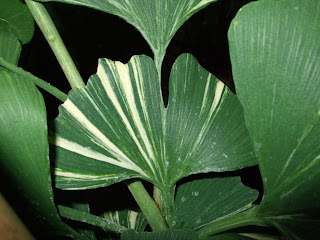 Ginkgo biloba 'Variegata' is the first one to come out and has been available for quite some time now. It is also known by other names (like 'Majestic Butterflies', etc) depending upon where it is sold but essentially they are the same with leaves randomly striped white/cream and occasionally throws out half/half and all white leaves too. It's one of my favourite plants in the garden and one of the most complimented by visitors. Even I cannot help but stop and marvel at the leaves whenever I pass by it and could easily spend lots of time taking close up photos of its foliage.