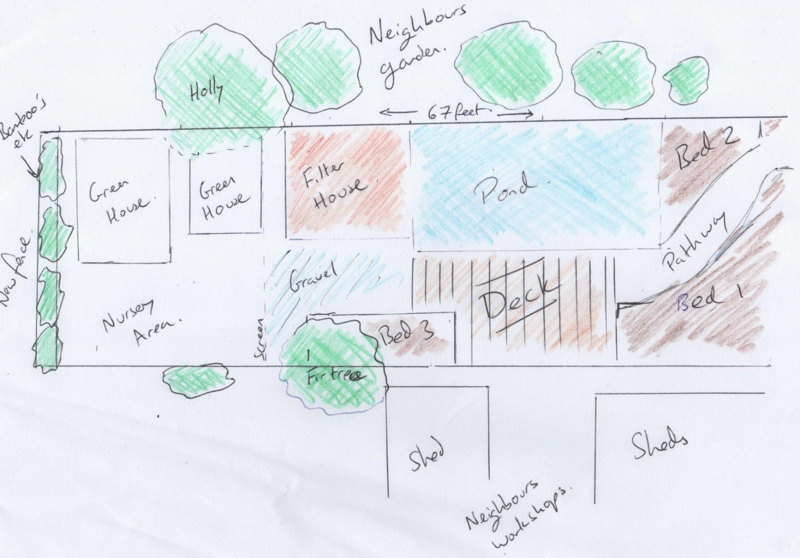 Often we are asked what our plans are, what we wish to achieve and what we intend on doing. Or if we just go along and make decisions along the way. Yes we do modify a few things as we go along, adjusting what needs adjusting in order to proceed. However the vast majority of what we have done is in accordance with the plans and designs we created prior to starting the project. The garden has been designed and most of the technical aspects had been worked out before we started.