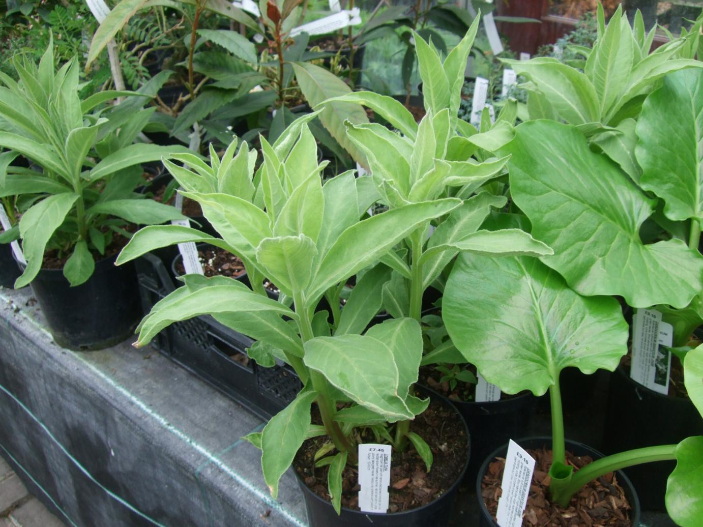 | Glaucous leaves and sun loving, this lot are destined to go in our first raised bed with slate mulch. |