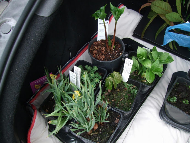 After a few hours browsing we came back with a relatively small but well chosen haul. Some of them we have already (for you can't just have a few of a good thing, you have to have several!) but most were new ones for this year like the Eremurus, Jeffersonia, and Iris.