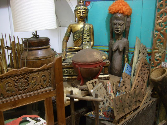 Most of the areas of our garden that we accessorise has a lush, leafy, tropical theme to it so it would be fitting to look for accessories that convey warm, tropical areas where this sort of planting is more associated with. So the items sold in these specialist shops would be perfect for what we're trying to do. A treasure trove of exotic delights to help stage dress our garden!