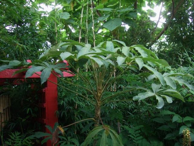 I am always admiring your fabulous foliage. Your garden is an inspiration, and because of you I purchased my own red banana tree. It has become one of my most beloved. I also thank you for my Fatsia, which is doing very well. Could Rubus lineatus be next? Unfortunately, not hardy in my area, but I wish!