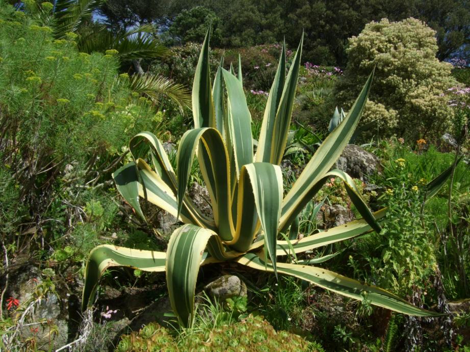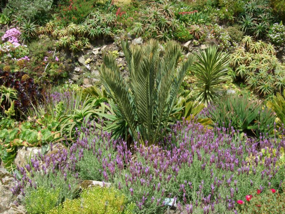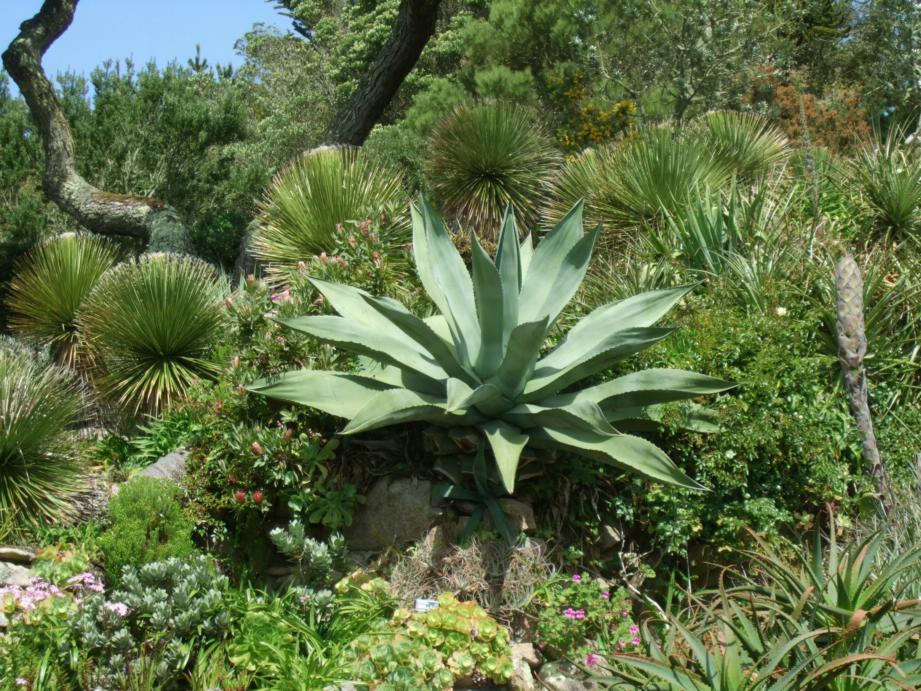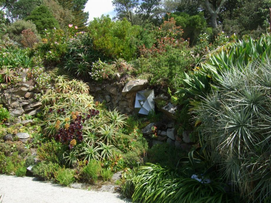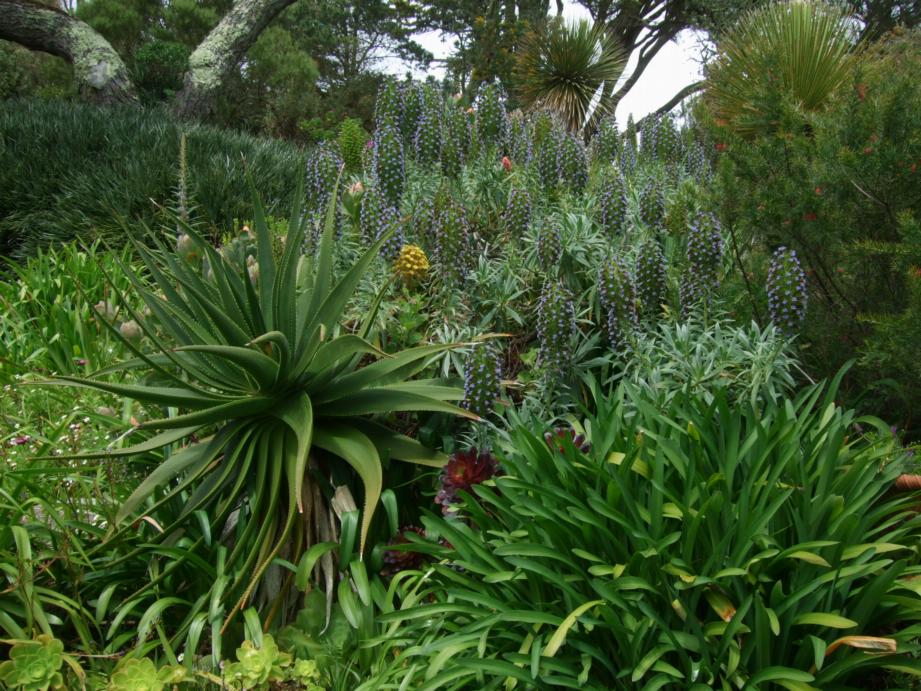 As you head up the hill slightly from the shady jungle, the garden opens up with an emphasis on succulents and more arid plants, these are still given a good level of shelter from the taller trees around the garden.