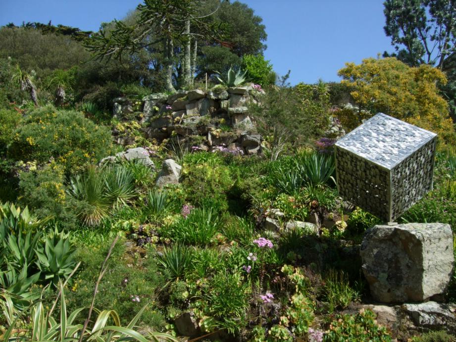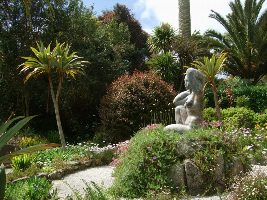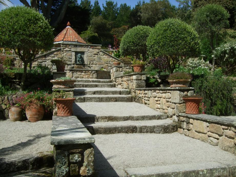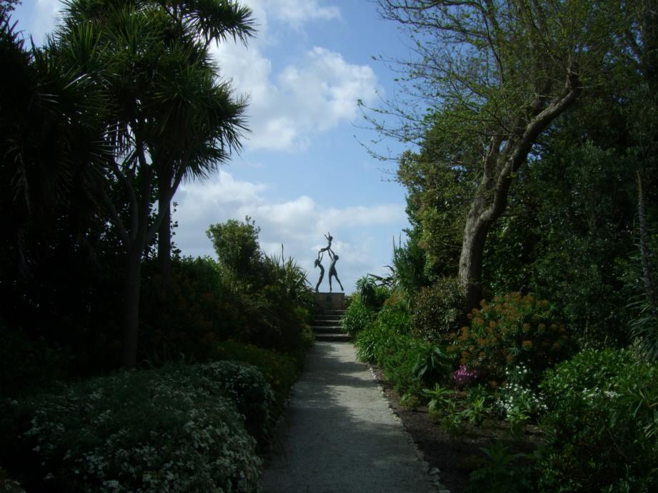 From the upper terrace a long flight of steps lead back down to the Tresco Children sculpture.