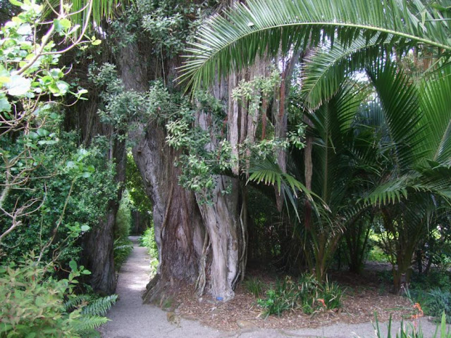 ReplyDeleteWOW! What a great post & wonderful garden! Love the carved boat figures. For a moment there, I got a bit spooked when I thought I saw a four legged man wielding a sword, and then I realised I was wrong, lol. The Tresco Children sculpture looks lovely too, likewise, Neptune & Gaia. Does the path really go straight through the one Metrosideros tree? Thanks! :)