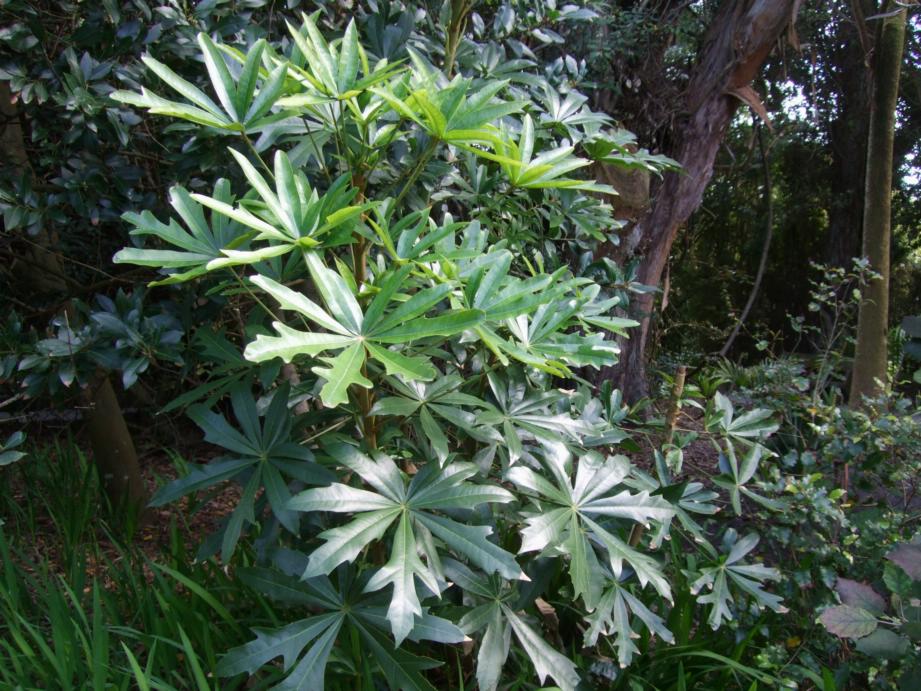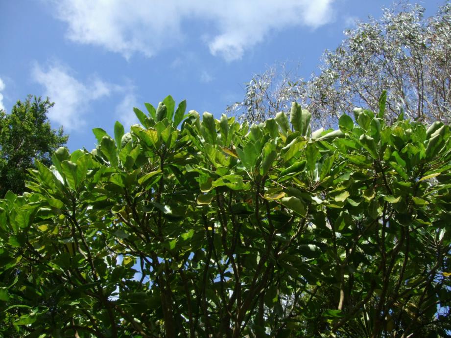 | Despite it being a wet spring we had lovely blue skies for our trip. Meryta sinclairii |