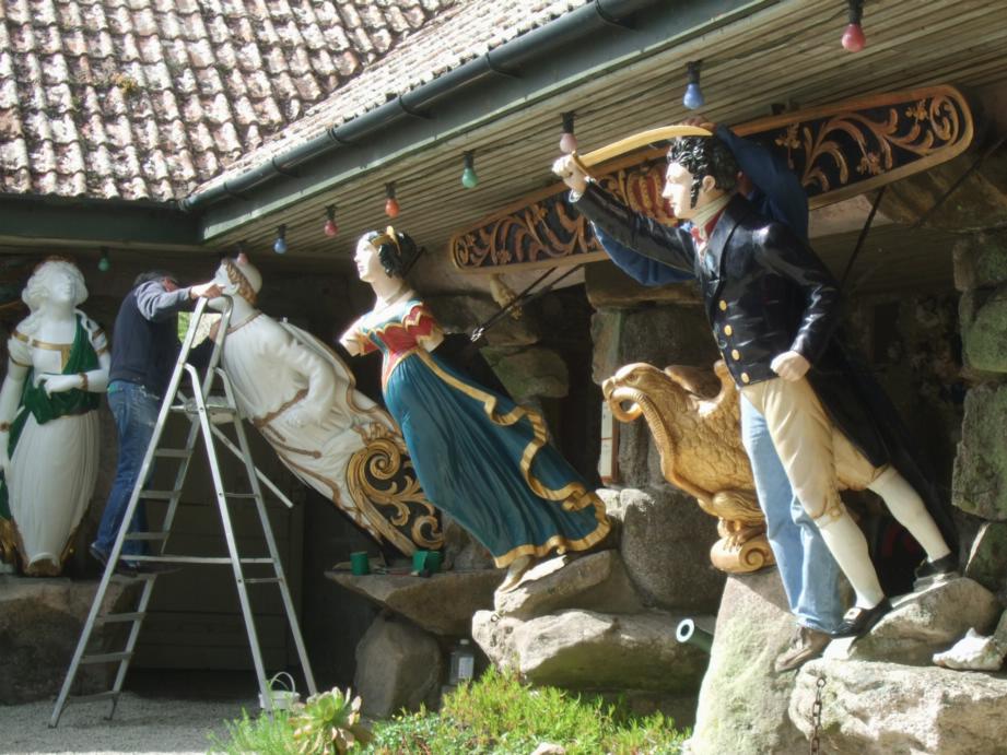 As well as having a large collection of plants, Tresco is also home to a collection of carved figures from boats wrecked on the rocks over the years. The figureheads in the Valhalla collection represent the final century in a tradition dating back over 3,000 years. From earliest times ships' bows have carried carvings of human or animal forms as part of the overall decoration of the vessels. The figures have altered over the centuries. Their pattern, size and shape have adapted to fit new types of ships' hulls, while their artistic style has changed to reflect contemporary fashions.