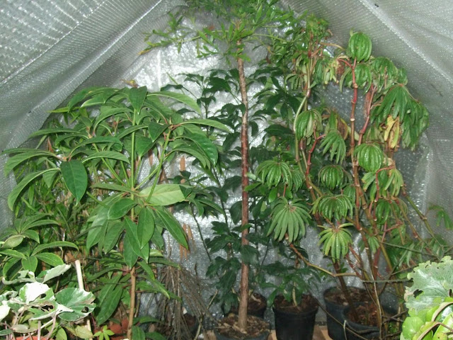 I started to tidy the 'leafy' greenhouse last Sunday, ready to jam in more 'leafy' plants in it the following days. I started to run out of time this evening and it was fast getting too dark to do such a potentially delicate procedure so only managed bring in a few tonight. This was how dark it was just before I finished...