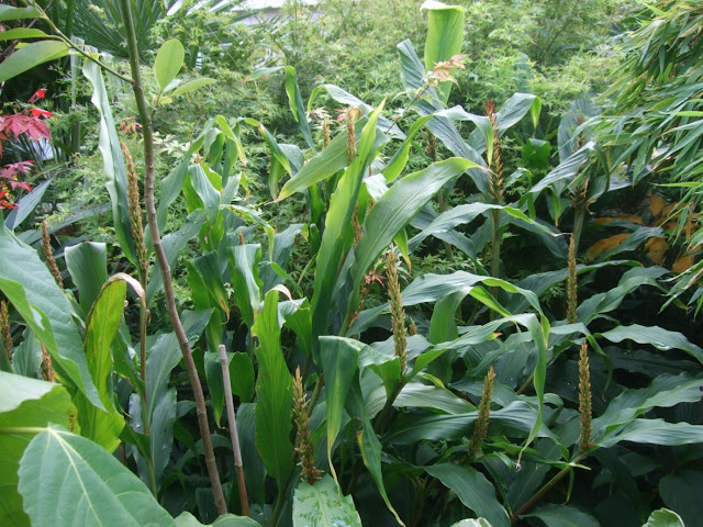 A lush clump of Hedychiums, which one, I can't remember and won't know until the flowers have opened!
