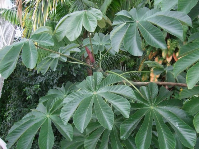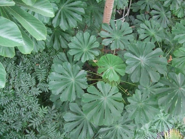 Tropical Schefflera, whilst these are not hardy there's now plenty of hardy schefflera available in the UK to get the look.