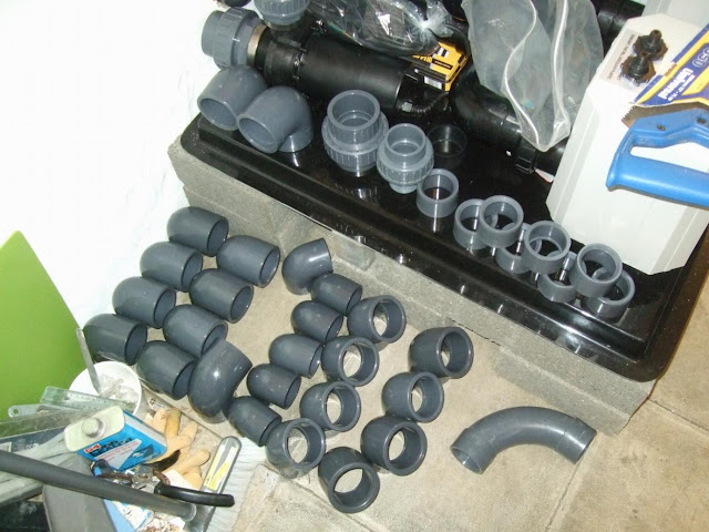 DeleteThat's a lot of nuts and bolts and adapters, etc! Whew! How long will those plants stay there? They should have light to avoid too much etiolation!