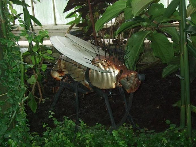| Within the Palm house there were a selection of metal bugs made from recycled tin cans. We didn't spot any information about these so I don't know if they are connected to the David Nash exhibition. |