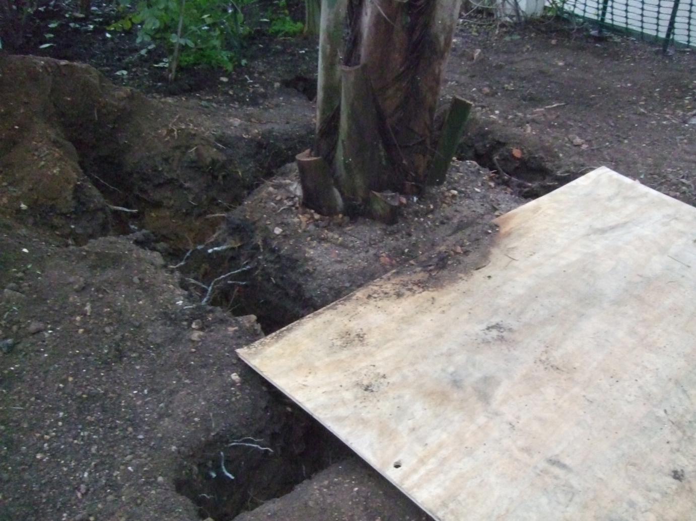 | The Stump of a former Washingtonia that was removed a couple of years ago when it outgrew its space. |