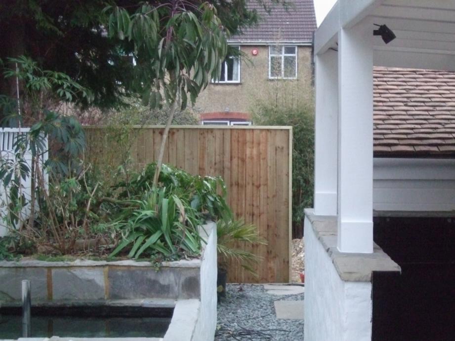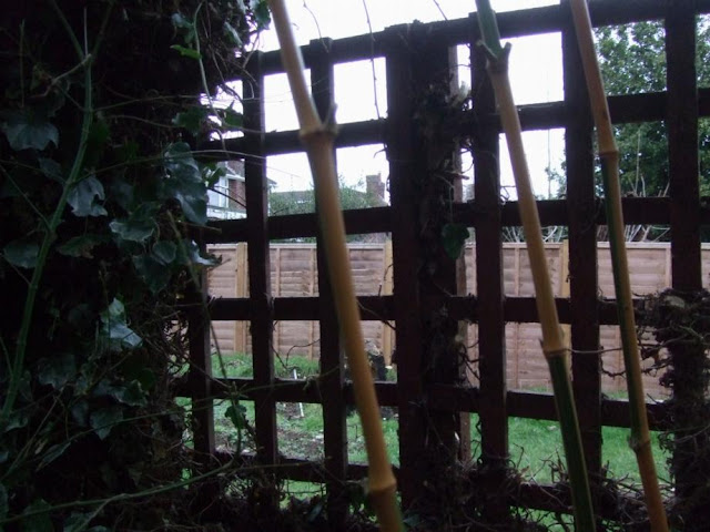 Now this one I did not expect at all that we'd do so soon, and so quick! I thought we wouldn't be doing this untill next month or so. But there it is now, all done. This panel demarcates the area of the new garden, giving a visual end to when you look down the narrow garden as you enter it. It also screens the more functional working area beyond it, and the gap will serve as the entrance way to it.