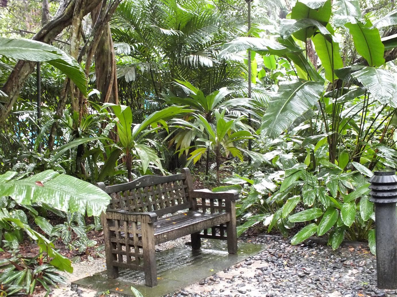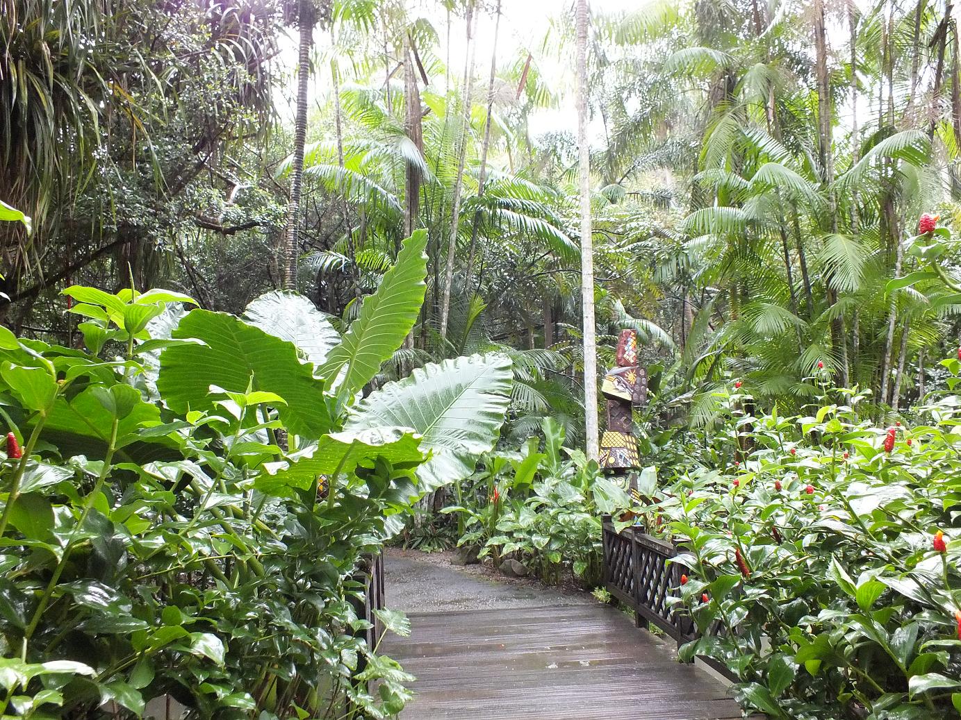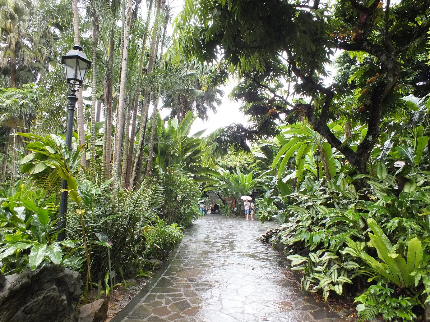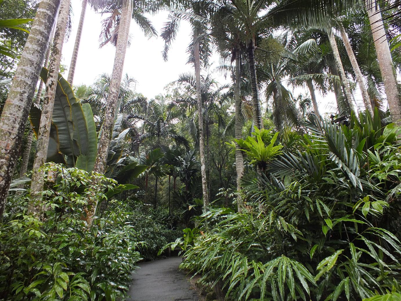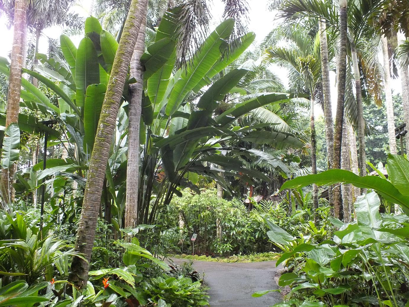 | The pathway that leads to the Ginger Garden, with towering trees indicating the botanic gardens' maturity |