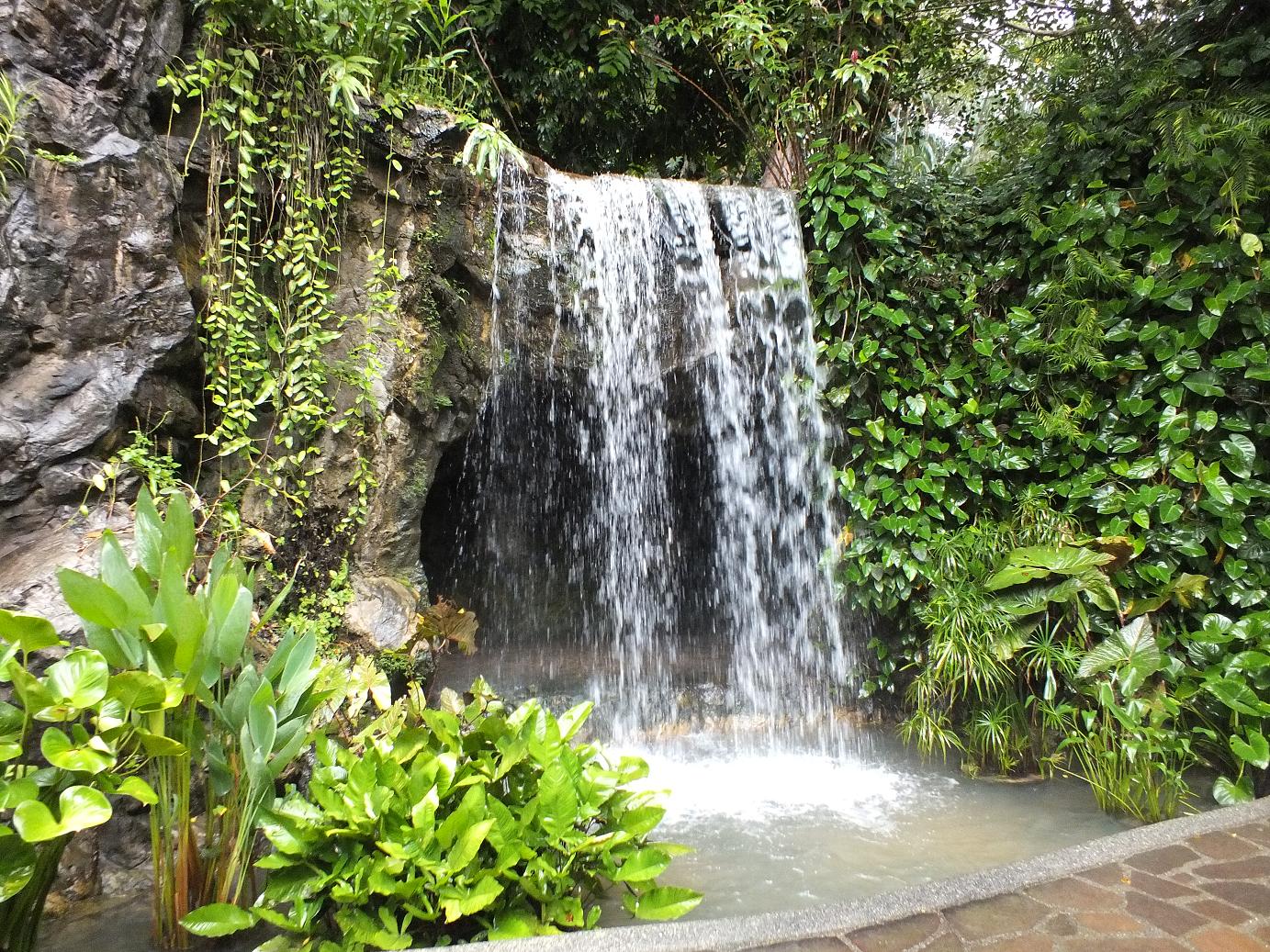 | This waterfall enhances and reinforces the atmosphere of a lush, tropical paradise |