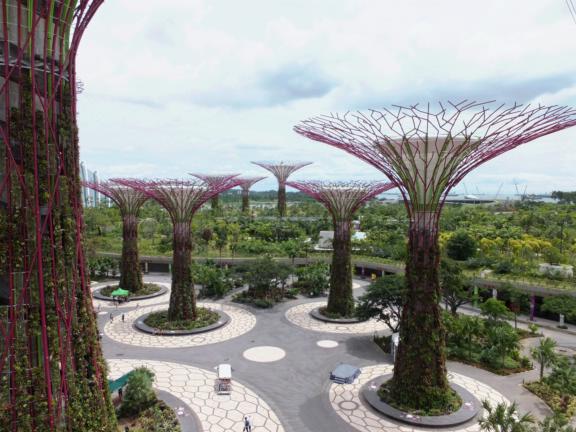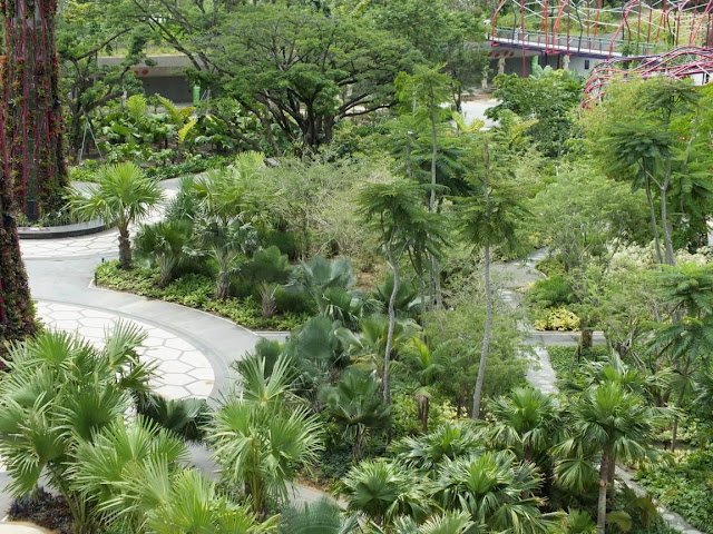Back on the ground and the planting is not quite so new looking. They have brought in hundreds of large trees, palms and shrubs to create this garden, which are starting to fill out and produce that lush look one would expect in Singapore. We will move on to this area around the garden in a future blog.