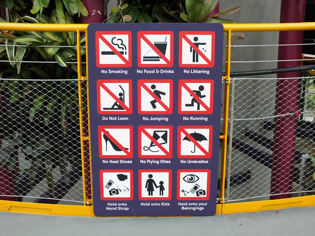 Singapore has a reputation for having signs forbidding almost everything, however we did not really notice too many. These signs above made me smile as they just seem so sweet and simple, although it doesn't say perhaps you are OK to walk on the garden as long as you have your safety boots on, only bare feet are banned! Or maybe not :)