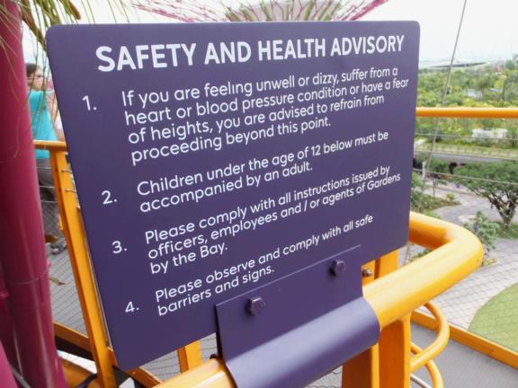Singapore is famous for its signs, and the walkway had several, don't forget you can't jump off and please no kites :)
