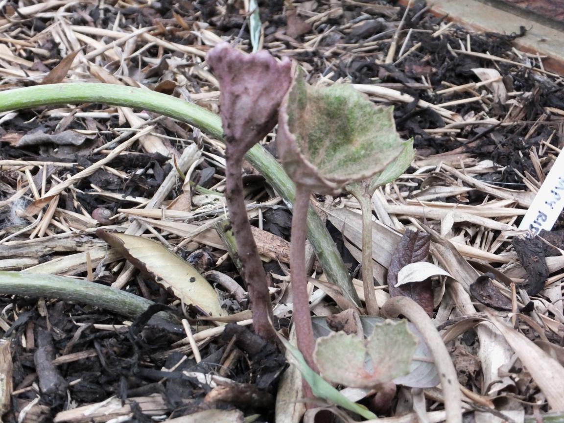 This little shoot of Impatiens omeiana is popping up in the 3rd raised bed near to the filter house. It has a habit of wandering about a little, this certainly wasn't where it was last year!